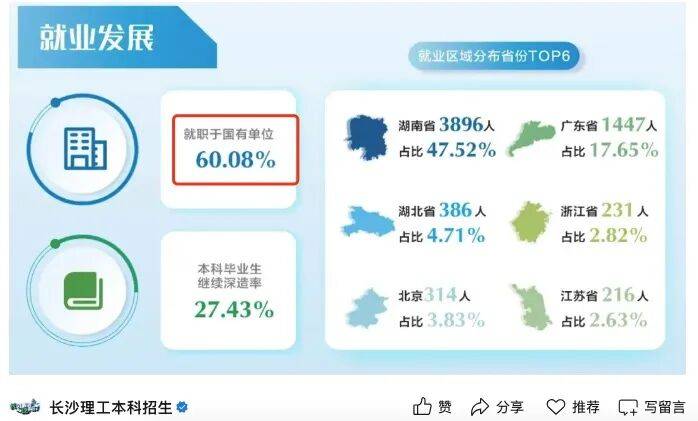 因而即便长沙理工大学并非211和双一流高校,结业生就业质量特别是国度电网的录用人数上,丝毫不比良多985高校差。2024届结业生有60。08%都正在国有企业就业!次要就业单元良多都是电力行业内的央国企。